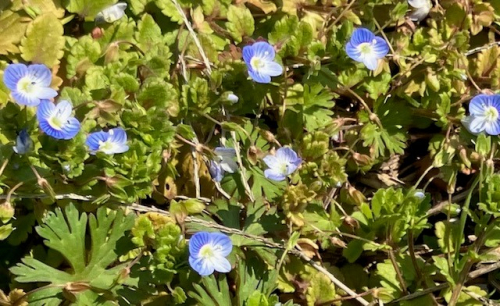 春一番が吹き抜け、やわらかな春の訪れを感じる季節となりました。野花の開花が進み、温かくやわらかな心地のよい香りと彩りに心がはずみます。 天気の良い日に畦道に一面のオオイヌノフグリを見つけました。 オオイヌノフグリは春の訪れとともに、小さな青い花を咲かせる野花です。道端や畑などでよく見かけることができます。とても小さな可憐な花で春日を浴びてとてもきれいです。傍には土筆もまっすぐにのびなんとかわいらしい。