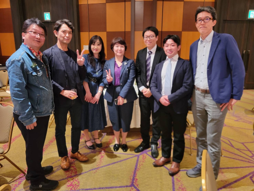 間違い探し!? 大野 均 さん(元ラグビー日本代表)の文化講演がありました。 学会長の青山教授を囲んで。